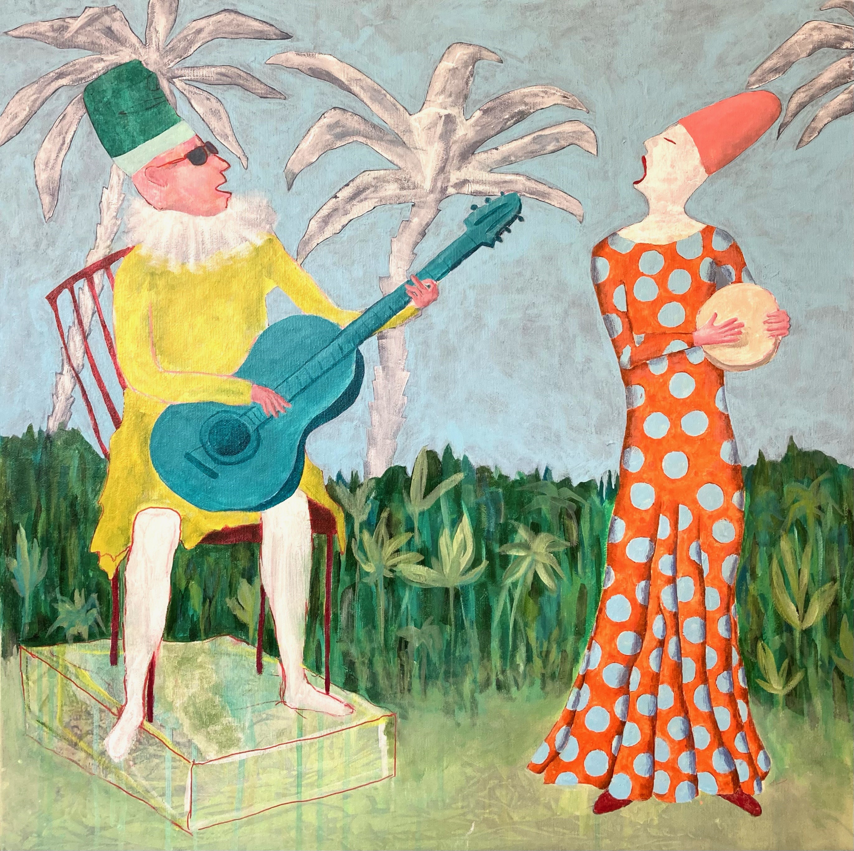 Merete Dahlstrøm de Vroom fra Tilst ved Aarhus maler overvejende figurativt med forskellige abstraktioner. ”Jeg er et positivt menneske, men mine figurer er ofte tænksomme, til tider vrede eller helt fjollede,” fortæller hun.