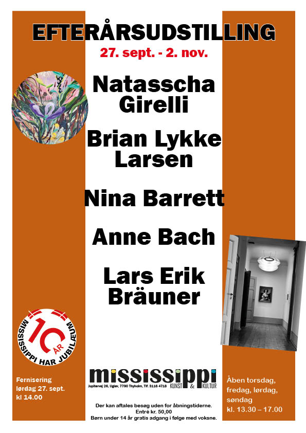 ”Jeg har tit sagt, at her er noget for enhver smag, når jeg har præsenteret en ny udstilling på Mississippi. Sådan er det også denne gang,” siger Bruno Nordensgaard, der sammen med de frivillige inviterer til fernisering 27. september. Sidste udstillingsdag for denne efterårsudstilling er 2. november